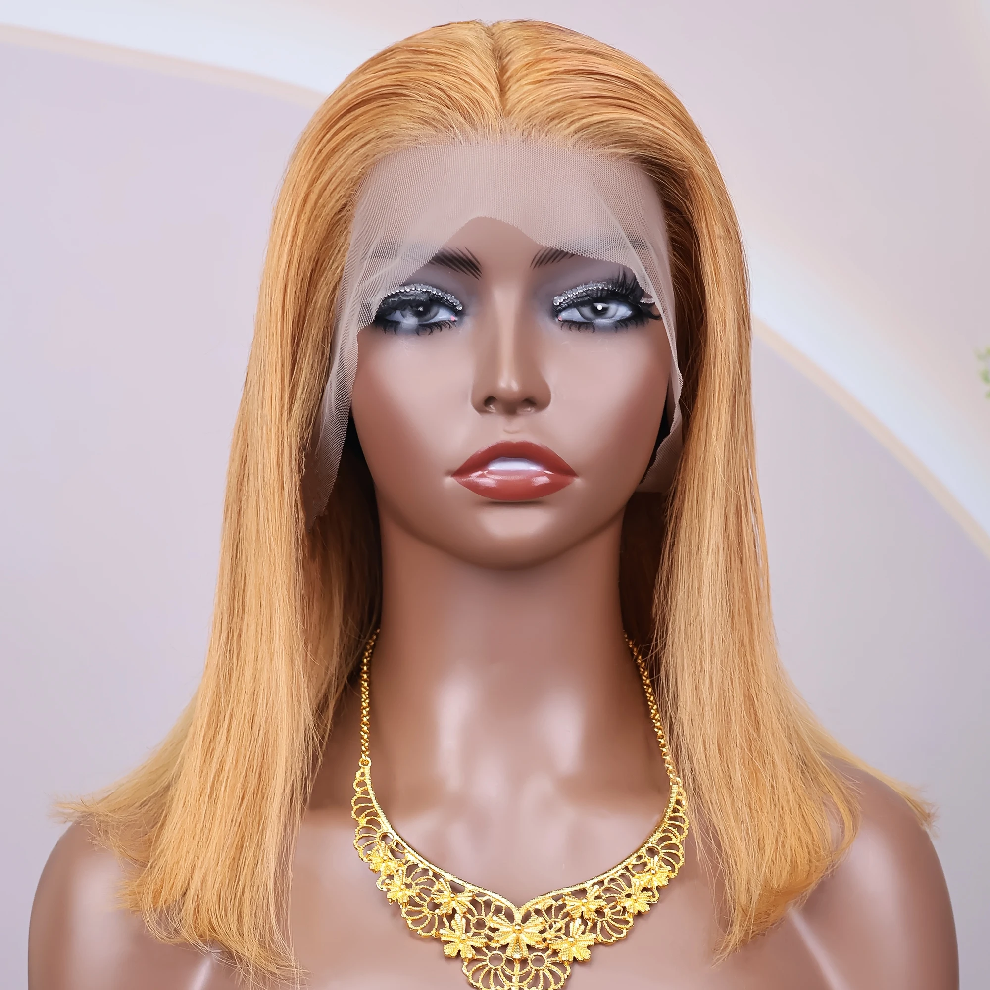 #30 Honey Blonde Straight 13x4 Hd Transparent Lace Frontal Wig Short Gold Bob Wig 100% Human Hair for Women
