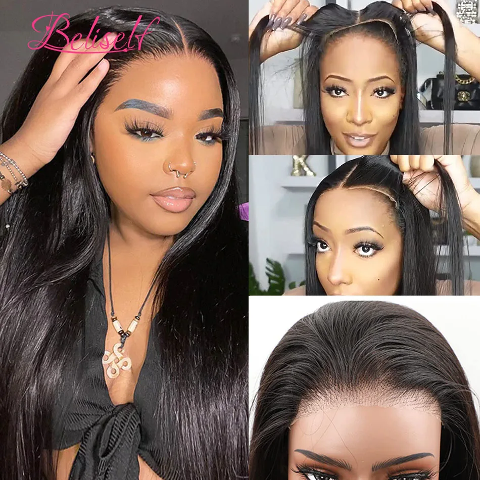 Beliself Glueless Human Hair Wig Straight 13x6 HD Lace Frontal Wig Pull Go Glueless Wig Human Hair with Elastic Drawstring