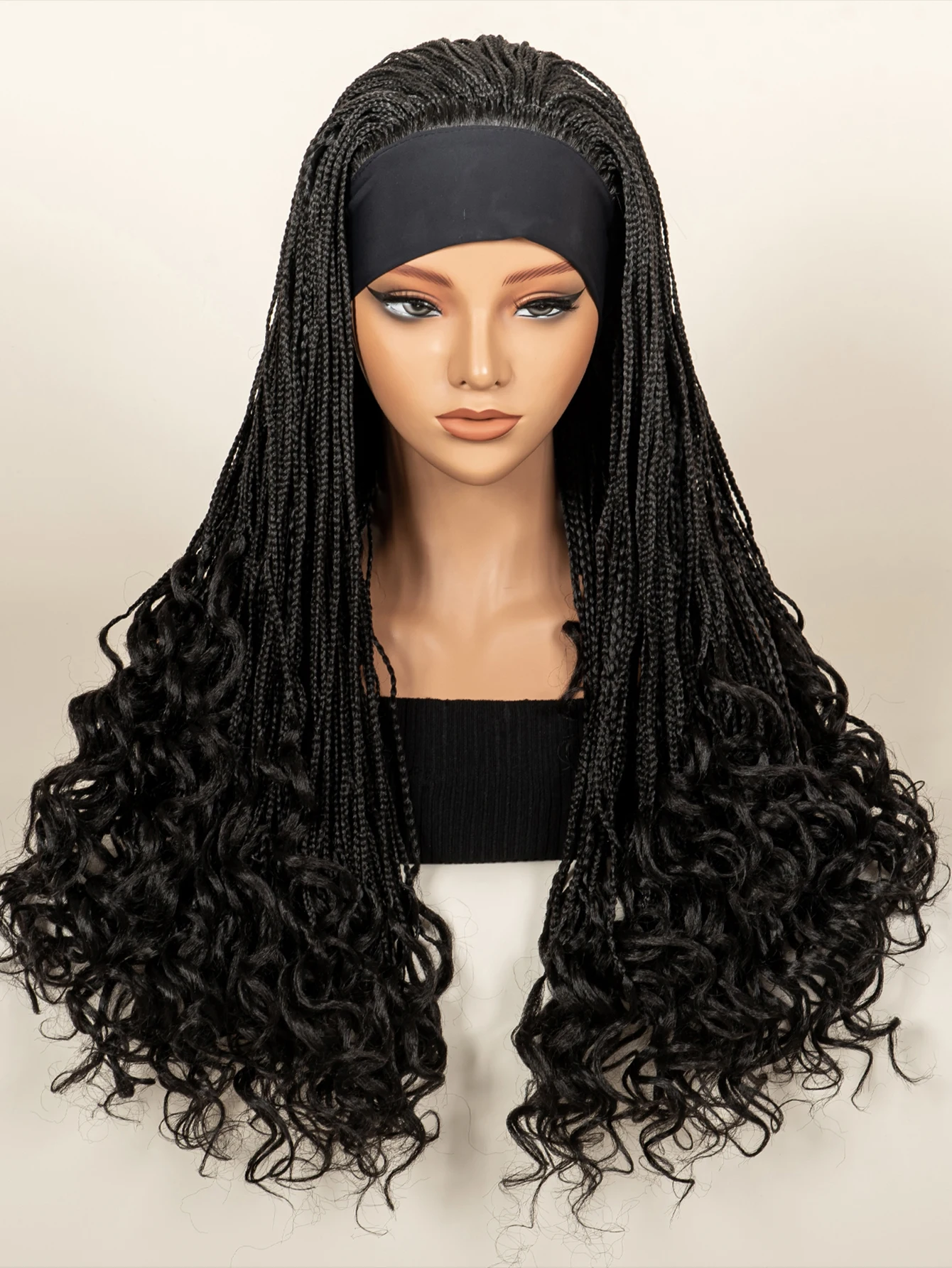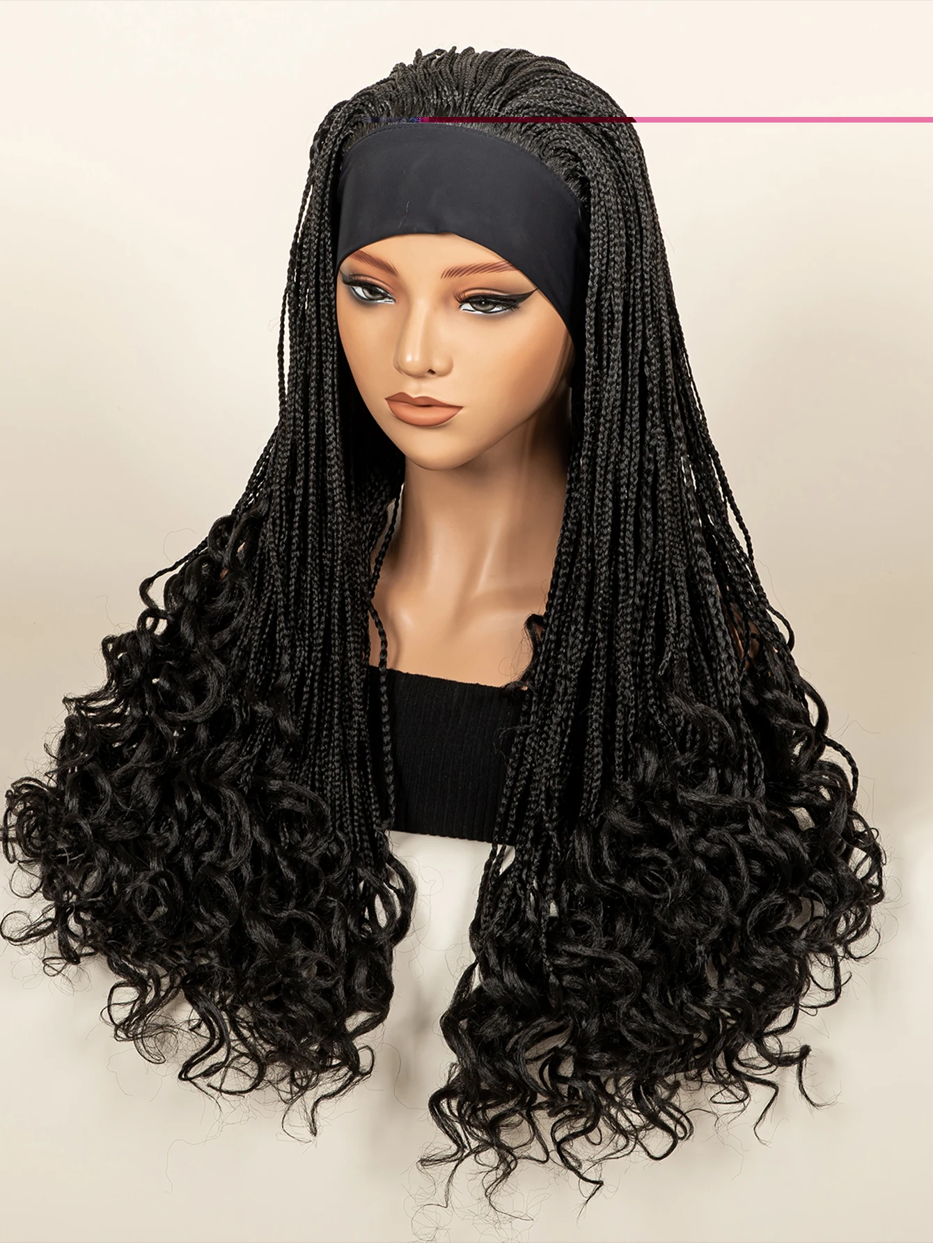 Headband Braided Wig Synthetic Braid Wig with Hair Band for Women Machine Made Braided Wig 28 Inch Women Wigs