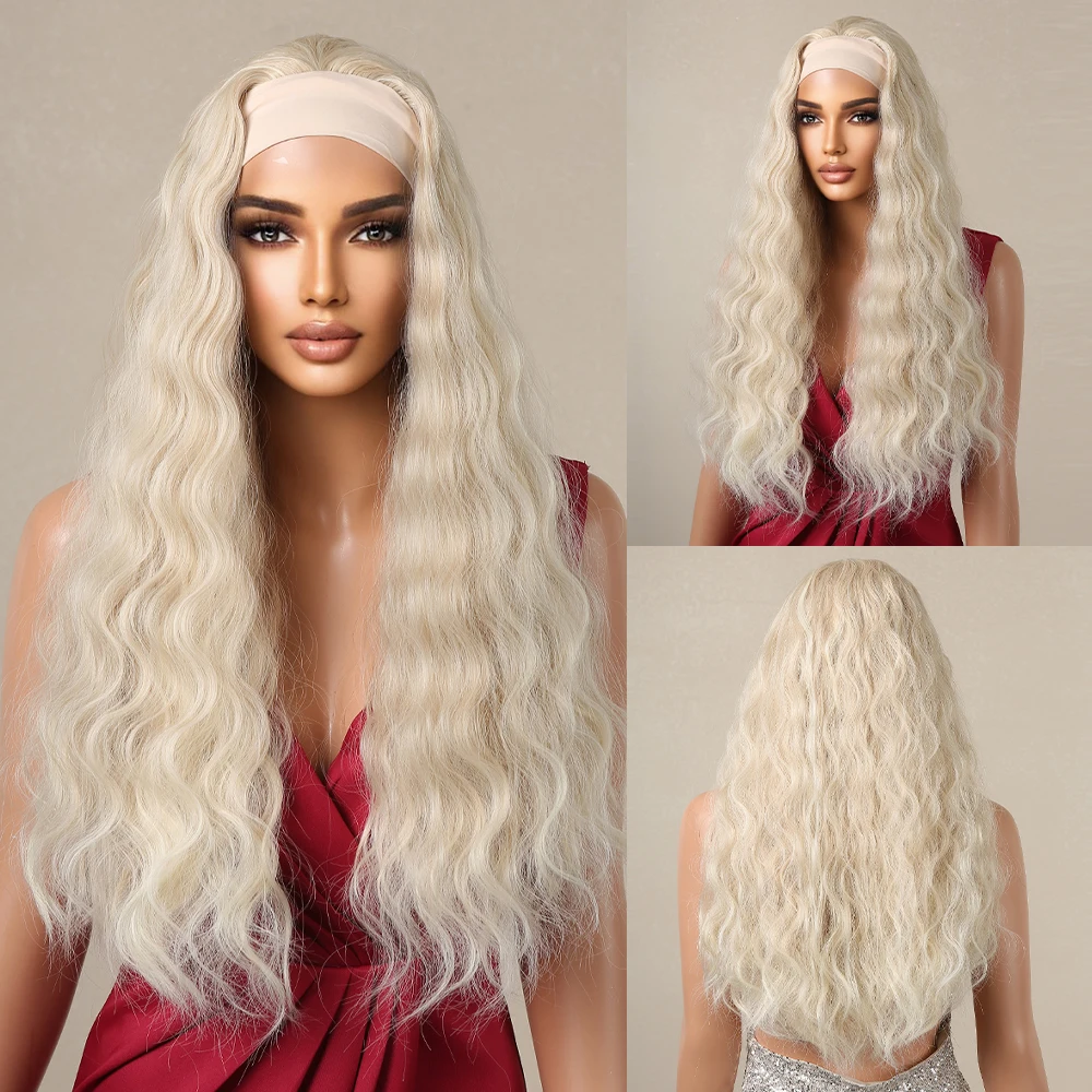 Headband Synthetic Wigs Long Afro Kinky Curly Golden Blonde Platinum Ombre Wig for Black Women Use Water Wave Wig Heat Resistant