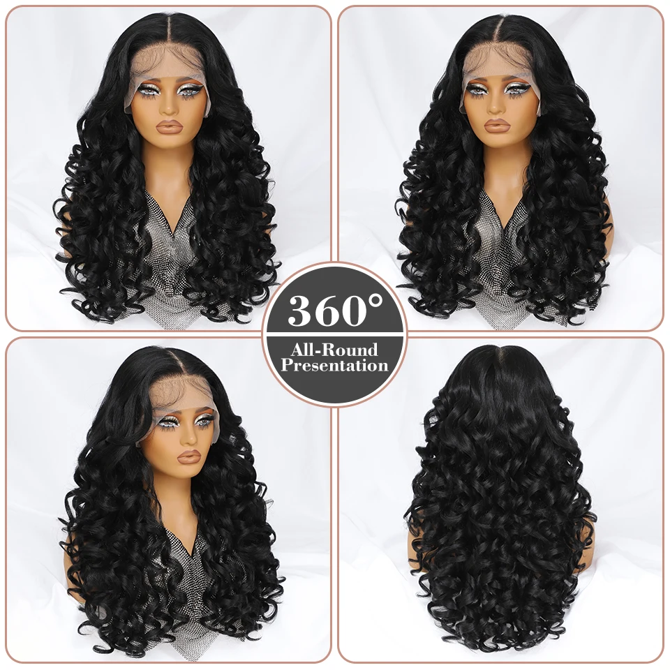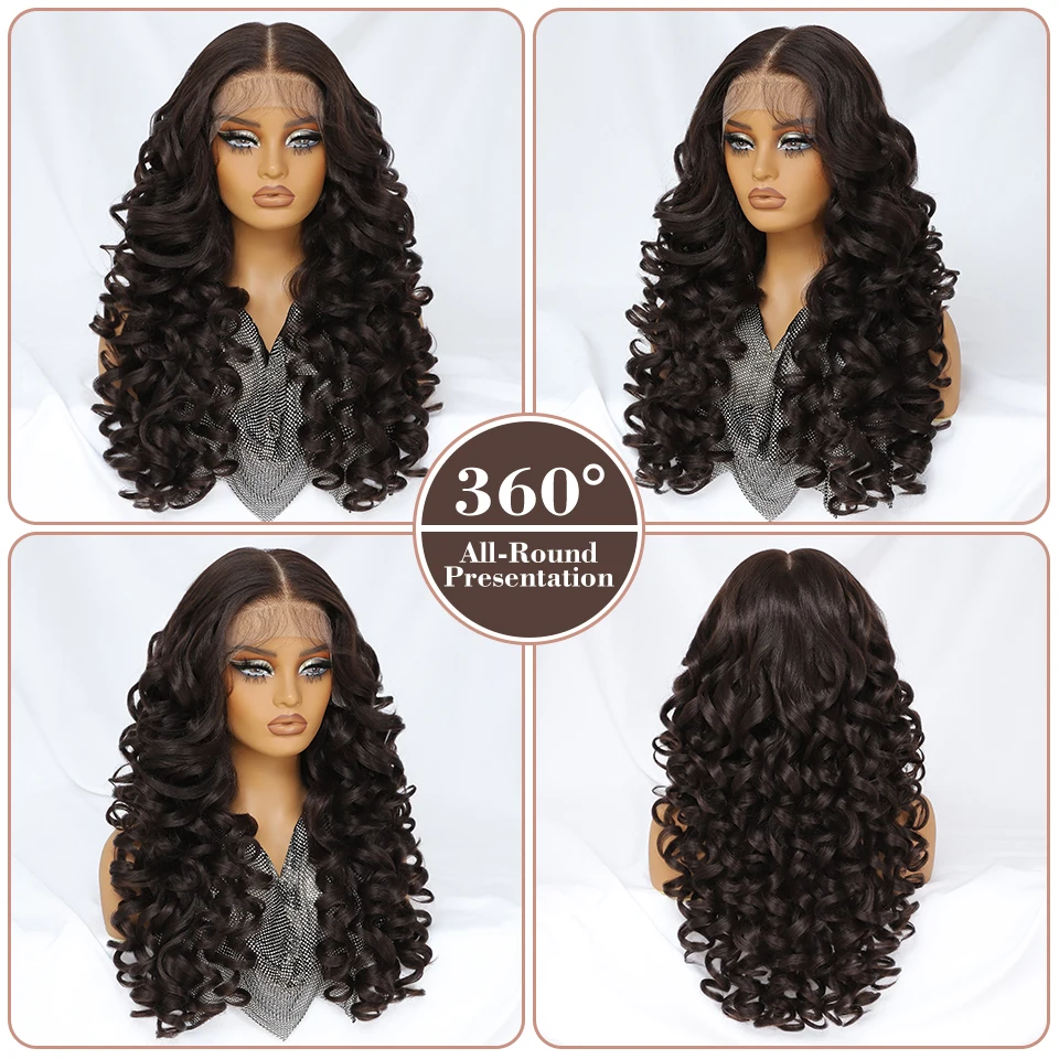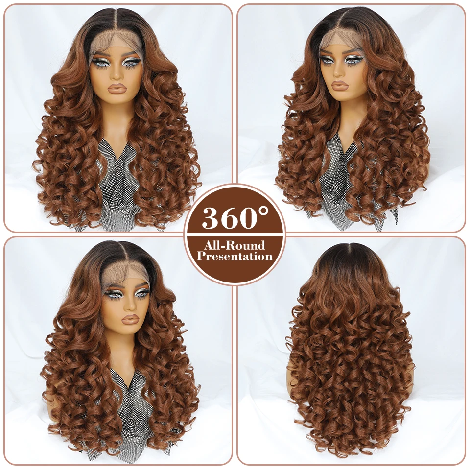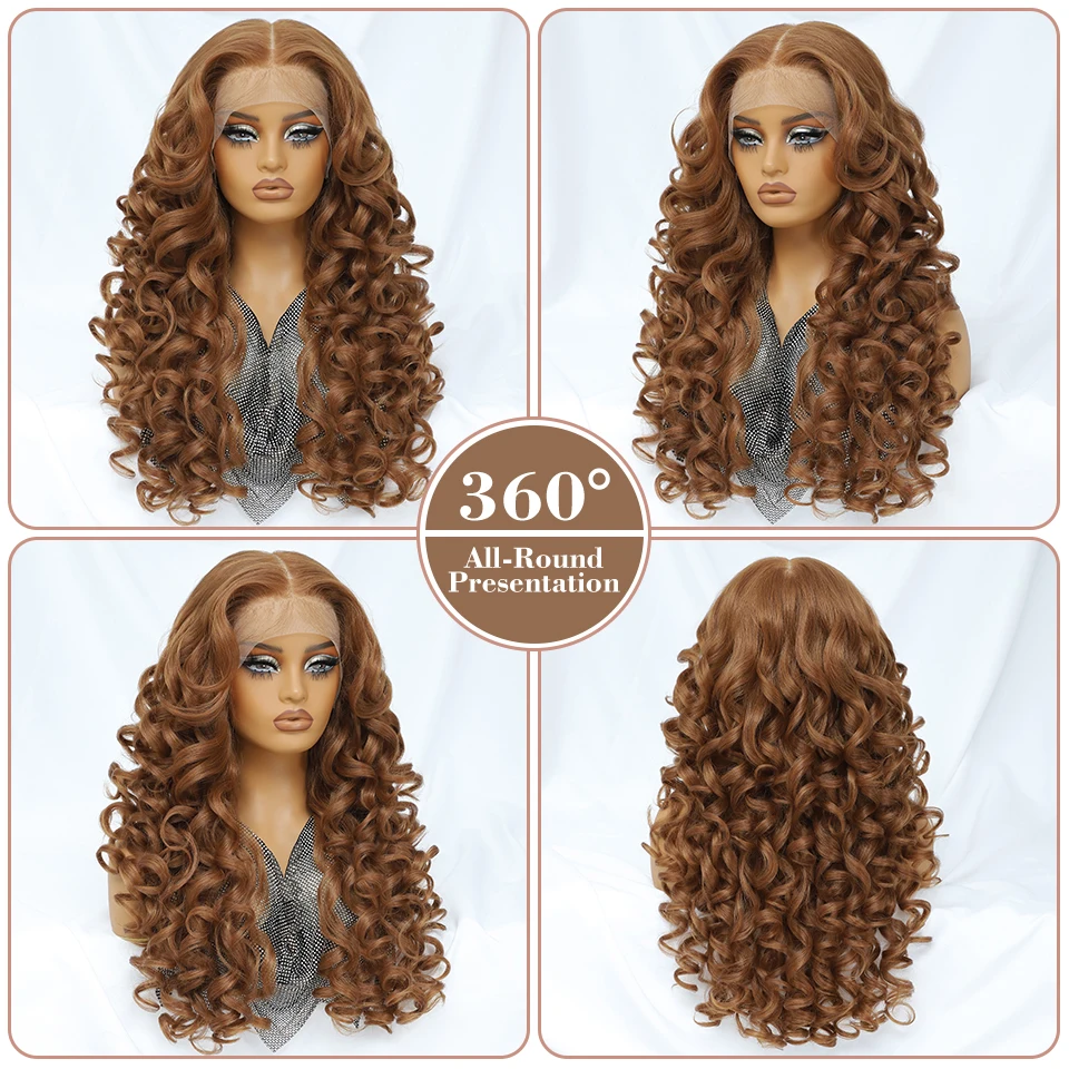 Latisha 13X6 HD Synthetic Lace Front Wigs Curly Pre Plucked Lace Frontal Wig with Bangs for Women Highlight with Babyhair 24Inch